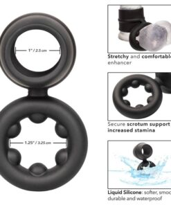 From bashful beginners to erotic experts, the Alpha Liquid Silicone Dual Magnum Ring will wrap you up tight in pleasure with the ultra plush, ultra stretchy enhancer ring. The playful ring is made from an ultra-stretchy liquid silicone with a daring dual ring design. This stretchy, comfortable cock ring is made to increase stamina, improve sensitivity and deliver superior erection support. The durable scrotum support ring lets you indulge even further into increased stamina. Look for an explosive pleasure experience while the plush ring squeezes with every movement. The premium liquid silicone is soft, smooth, durable and waterproof.
