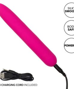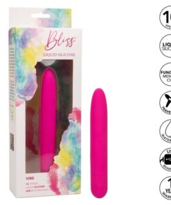Indulge in a pleasure paradise with the teasing Bliss Liquid Silicone Vibe. This sensational vibe features a soft tip, body-forming liquid silicone design, and 10 powerful speeds of vibration. The rounded tip and 100% liquid silicone body are perfect for caressing internal and external sweet spots. Get playful with each increase of the 10 incremental speeds of vibration with the easy-touch control button. Effortlessly control pure pleasure with an easy-touch silicone button and hold for 3 seconds to turn on or off. The ultra-plush liquid silicone is great for exploring sensual sweet spots and intimate pleasure points with ease. Use the smooth single button control to enjoy up to 110 minutes of vibrating pleasure. Charge up your passion in only 1.5 hours by plugging the provided USB cable into the self-sealing charging port on the base of the massager.