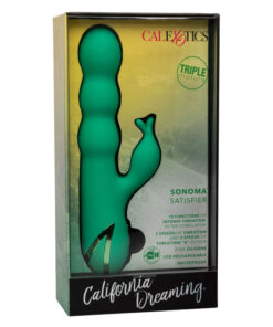 The playful California Dreaming Collection brings luxurious fantasies to life with the orgasmic Sonoma. The powerful massager is ready to relive your favorite summer adventure fantasies with 10 powerful vibration functions and 3 knee-shaking thrusting speeds.