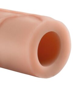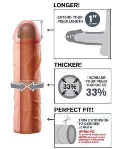 The Perfect 1″ Extension is a customizable extension that can be easily trimmed at the base for a perfect fit. Its super-stretchy to accommodate most sizes and snug enough to help you last longer. Your partner will enjoy deeper penetration with the 1″ extension at the tip, while the ultra-lifelike shaft makes you 33% thicker to offer a fuller feeling and exceptional climax. The super-soft Fanta Flesh material feels like a second skin”only better!