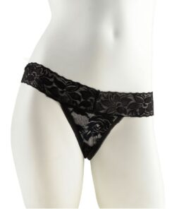 Can you keep a secret? Tucked away discreetly inside this sexy, low-rise thong is a hidden micro-bullet designed to rock your world! The soft, stretchy waistband is so comfortable, youll forget youre even wearing panties — until you turn on the secret micro stimulator. With the push of a button, the whisper-quiet motor comes to life and provides direct stimulation where you want it most.