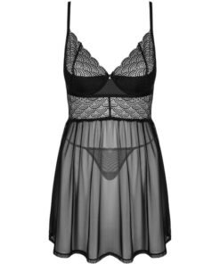 Chemeris babydoll thong – You will ignite passion as soon as you appear in this extremely flirtatious set. Classic cut, geometric patterns and delicate black fabric will highlight your curves in the most seductive way. Feel feminine, more confident, and beautiful like never before! Get ready for tender compliments and unforgettable moments.