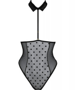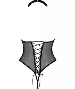 This sexy Trisha bodysuit is a proposal from the Passion brand, aimed at women who are aware of their body and their femininity. Perfect for any time and occasion when you want to have fun. The model presented completely exposes the breasts. Corset back trim increases comfort. A sexy and detachable neck-shaped choker adds overall character.