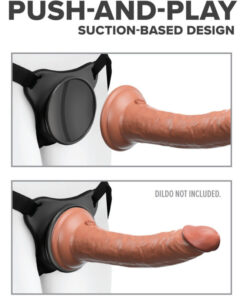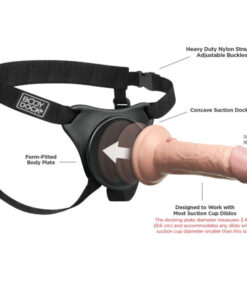 The patented Body Dock Universal Strap-On Harness System takes strap-on play to a whole new level! It’s as simple as attaching the suction cup on your favorite dildo or vibrator to the docking plate, while the nylon straps easily adjust to fit most sizes and body types. No rings. No snaps. No hassle! Best of all, it works with most dildos on the market today, including some you may already own. Changing your favorite strap-on accessory has never been faster or easier!